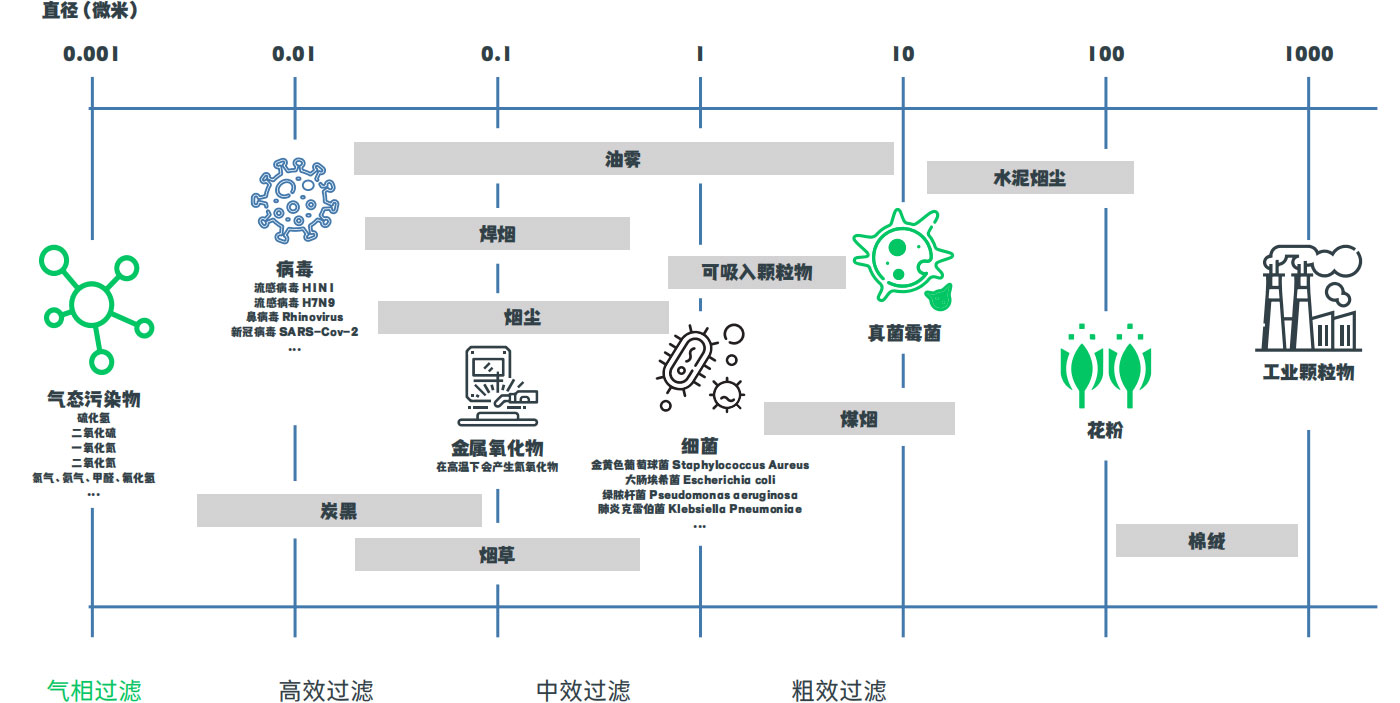 采用专利滤材作为粉尘过滤核心部件,覆盖直径为0.2-0.3μm的纳米纤维层,可过滤粉尘粒径在0.1μm 以上的粉尘。